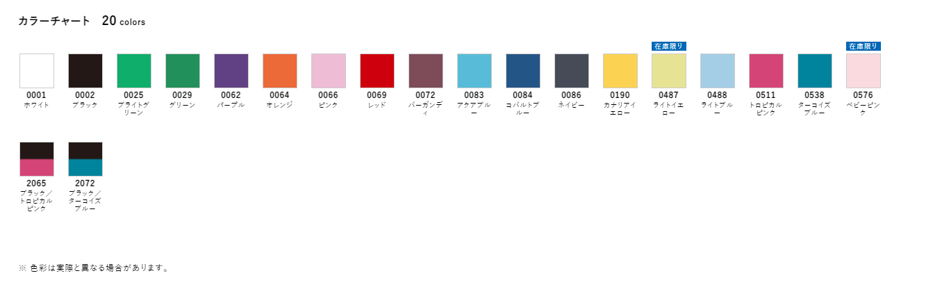 002.ブラック・086.ネイビー・2065.ブラック/トロピカルピンク・2072.ブラック/ターコイズブルー:黒色